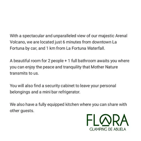 In unmittelbarer Nähe vom Arenal Oasis Wildlife Refuge gelegen, bietet diese Villa eine Lage in der ländlichen Gegend. Die Villa Flora Glamping De Abuela liegt in einer Entfernung von ungefähr 10 Fahrminuten von Naturattraktionen wie dem Fortuna Park. Diese Unterkunft in La Fortuna ist 4 Kilometer von den Kalambu Hot Springs entfernt.