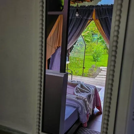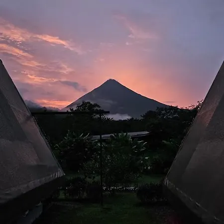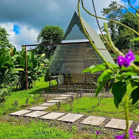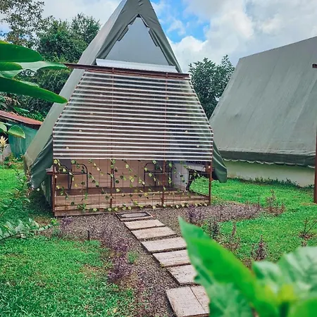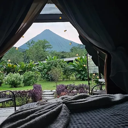 Die Villa Flora Glamping De Abuela La Fortuna bietet eine Terrasse mit Blick auf die Berge und liegt nur 5 Fußminuten von der Wood & Art Gallery entfernt. Die Lodge in La Fortuna verwöhnt seine Gäste mit heißen öffentlichen Bädern und bietet Blick auf den Garten sowie liegt in 3 Kilometer Entfernung vom Arenal Ecoglide Park.